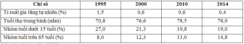 Cho bảng số liệu: MỘT SỐ CHỈ SỐ DÂN SỐ CỦA HOA KÌ QUA CÁC NĂM Nhận xét nào sau đây là
