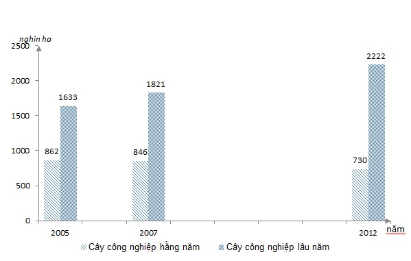 Cho biểu đồ sau: DIỆN TÍCH CÂY CÔNG NGHIỆP HÀNG NĂM VÀ LÂU NĂM CỦA NƯỚC TA GIAI ĐOẠN 2005