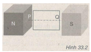 Trên hình 33.2 vẽ một khung dây dẫn kín đặt trong từ trường. Giải thích vì sao khi cho khung dây quay quanh trục PQ nằm ngang thì trong khung dây không xuất hiện dòng điện xoay chiều.