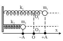 Cho hai con lắc lò xo nằm ngang (k1, m1) và (k2, m2) như hình vẽ, trong đó có k1 và k2 là