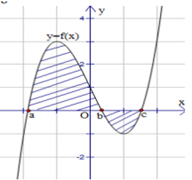 Cho hàm số \(y=f\left( x \right)\) liên tục trên \(\mathbb{R}\) và có đồ thị như hình vẽ bên. Hình phẳng được đánh dấu trong hình bên có diện tích là