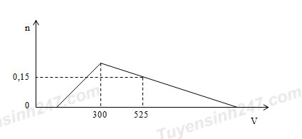 Cho từ từ dung dịch HCl 1M vào dung dịch chứa x mol NaOH và y mol NaAlO2. Số mol Al(OH)3 (n mol) tạo thành phụ thuộc vào thể tích dung dịch HCl (V ml) được biểu diễn bằng đồ thị bên. Tỷ số của x/y có giá trị là