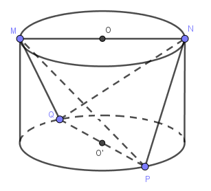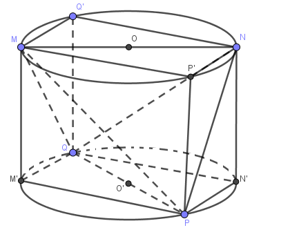 Một người thợ có một khối đá hình trụ. Kẻ hai đường kính MN, PQ của hai đáy sao cho MN