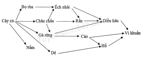 Giả sử một lưới thức ăn có sơ đồ như sau. Phát biểu dưới đây sai về loại thức ăn này?