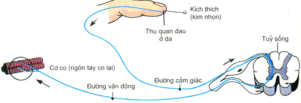 Cung phản xạ “co ngón tay của người” thực hiện theo trật tự nào?