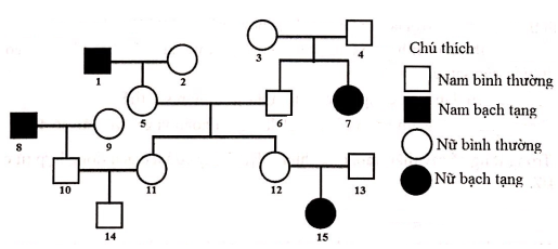 Sơ đồ phả hệ mô tả sự di truyền một bệnh ở người, bệnh bạch tạng do alen lặn nằm trên NST thường quy định, alen trội tương ứng quy định kiểu hình bình thường