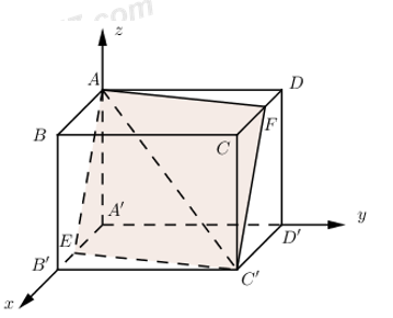 Gắn hệ trục tọa độ Oxyz để giải bài toán.