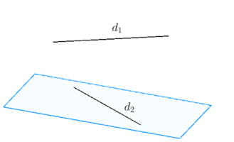 +) Lấy mặt phẳng (P) chứa đường thẳng \({{d}_{2}}\) và song song với \({{d}_{1}}\). Khi đó, \(d({{d}_{1}},{{d}_{2}})=d({{d}_{1}},(P))\).