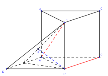 Cho lăng trụ \(ABC.A'B'C'\) có các mặt bên đều là hình vuông cạnh a. Khoảng cách giữa hai đường thẳng A’B và B’C’ bằng
