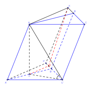 Cho lăng trụ ABC.A’B’C’ có \(AB=2a\), \(BC=2a\), \(\widehat{ABC}={{120}^{0}}\). Hình chiếu vuông góc
