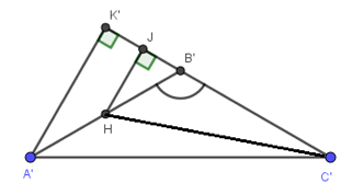 Cho lăng trụ ABC.A’B’C’ có \(AB=2a\), \(BC=2a\), \(\widehat{ABC}={{120}^{0}}\). Hình chiếu vuông góc của A trên mặt phẳng (A’B’C’) trung với điểm của A’B’. Góc giữa đường thẳng AC’ và mặt phẳng (A’B’C’) bằng \({{60}^{0}}\). Gọi \(\alpha \) là góc giữa hai mặt phẳng (BCC’B’) và (ABC). Khi đó, \(\tan \alpha \) có giá trị là:
