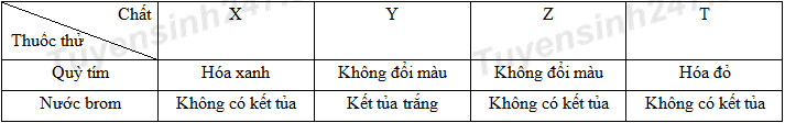 Hiện tượng khi làm thí nghiệm với các chất sau ở dạng dung dịch X, Y, Z, T được ghi lại như sau: