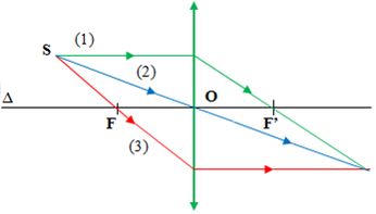 + Tia tới song song với trục chính thì tia ló qua tiêu điểm.