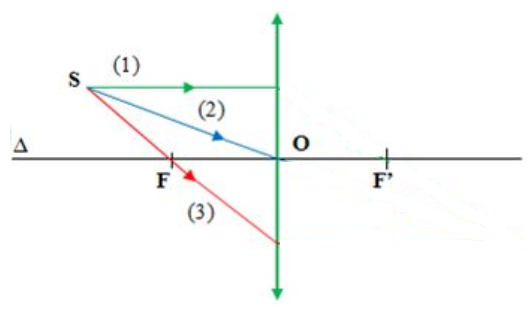 Đường truyền của ba tia sáng đặc biệt qua thấu kính hội tụ: