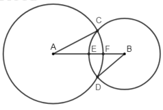 Cho AB = 6cm. Vẽ đường tròn (A; 4cm) và (B; 3cm), hai đường tròn này cắt nhau tại C và D. Gọi F là giao điểm của (A; 4cm) và AB, E là giao điểm của (B; 3cm) và AB.