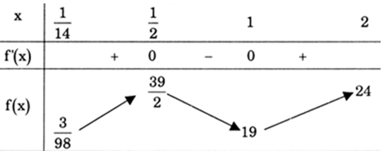 Gọi \(S=\left( a;b \right)\) là tập tất cả các giá trị của tham số thực \(m\) để phương trình \({{\log }_{2}}\left( mx-6{{x}^{3}} \right)+{{\log }_{\frac{1}{2}}}\left( -\,14{{x}^{2}}+29x-2 \right)=0\) có 3 nghiệm phân biệt. Khi đó hiệu \(H=b-a\) bằng