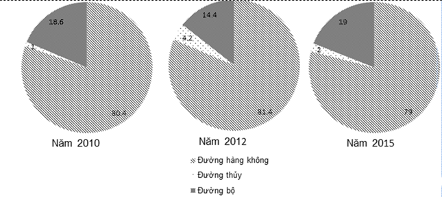 Biểu đồ cơ cấu khách du lịch quốc tế đến Việt Nam phân theo phương tiện đến