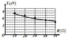 Một học sinh làm thí nghiệm để đo điện dung của tụ điện. Học sinh này mắc nối tiếp R với tụ điện C thành mạch điện AB, trong đó điện trở R có thể thay đổi được. Đặt vào hai đầu AB một điện áp xoay chiều \(u = 10\sqrt 2 \cos \left( {100\pi t} \right)V\) . Kết quả thí nghiệm được biểu diễn bằng đồ thị như hình vẽ. Với UC là điện áp hiệu dụng giữa hai đầu tụ điện. Giá trị của điện dung C là