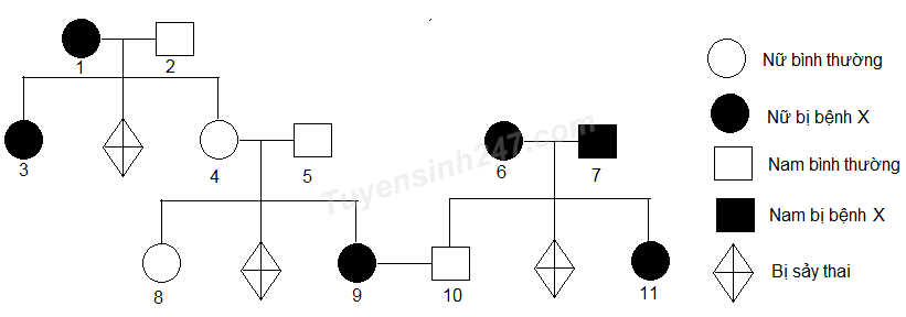 Biết rằng, ở người bệnh X do một trong hai gen lặn a hoặc b quy định; kiểu gen đồng hợp lặn về cả hai gen gây sẩy thai. Theo lí thuyết, có bao nhiêu nhận xét sau đây đúng?