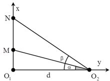 Trong một thí nghiệm về giao thoa sóng nước, hai nguồn sóng kết hợp là O1 và O2 dao động cùng pha, cùng biên độ. Chọn hệ tọa độ vuông góc Oxy với gốc tọa độ là vị trí đặt nguồn O1 còn nguồn O2 nằm trên trục Oy. Hai điểm M và N di động trên trục Ox thỏa mãn OM = a; ON = b (a < b). Biết ab = 324 cm2; O1O2 = 18 cm và b thuộc đoạn [21,6; 24] cm. Khi góc \(\widehat {M{O_2}N}\) có giá trị lớn nhất thì thấy M và N dao động với biên độ cực đại và giữa chúng có hai cực tiểu. Số điểm dao động với biên độ cực đại trong khoản giữa hai nguồn O1O2 là