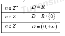 Hàm số \(y={{x}^{n}}\) có TXĐ: