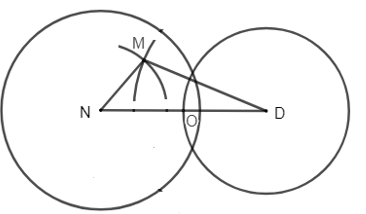 Vẽ \(\Delta MN\text{D}\) có \(MN=2cm,\ M\text{D}=4cm,\ N\text{D}=5cm.\) a) Vẽ \(\left( N;\ 3cm \right)\), hai