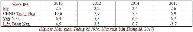 TỐC ĐỘ TĂNG TRƯỞNG GDP CỦA MỘT SỐ QUỐC GIA GIAI ĐOẠN 2010 – 2015
