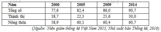 Cho bảng số liệu:DÂN SỐ NƯỚC TA PHÂN THEO THÀNH THỊ, NÔNG THÔN (Đơn vị: triệu người)