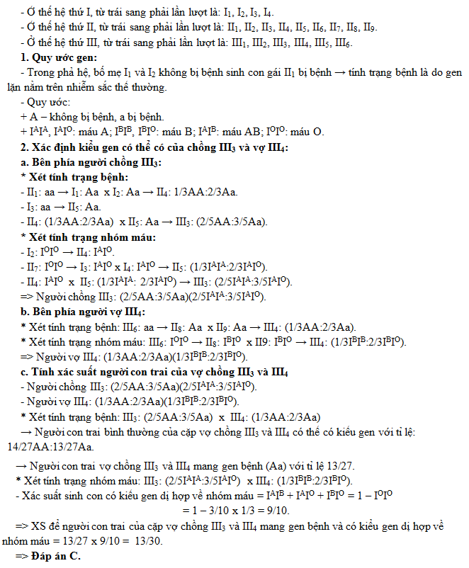 Xác suất để đứa con trai do cặp vợ chồng ở thế hệ III sinh ra mang gen bệnh và có kiểu gen dị hợp về nhóm máu là bao nhiêu?