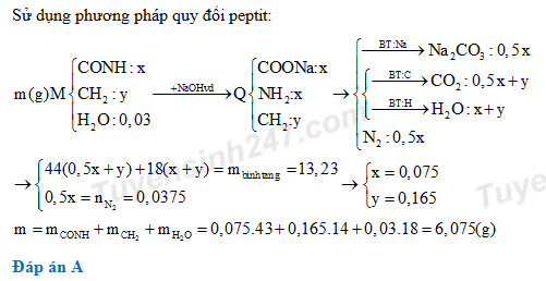 Sử dụng phương pháp quy đổi peptit thành CONH, CH2 và H2O (với số mol H2O là số mol peptit).