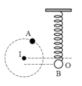Vật A chuyển động tròn đều với bán kính quỹ đạo 8 cm và chu kì 0,2 s. Vật B có khối lượng 100 g dao động điều hoà theo phương thẳng đứng với biên độ 10 cm và tần số 5 Hz. Tâm I quỹ đạo tròn của vật A cao hơn vị trí cân bằng O của vật B là 1 cm (hình vẽ). Mốc tính thời gian lúc hai vật ở thấp nhất, lấy π2 ≈ 10. Khi hai vật ở ngang nhau lần thứ 5 kể từ thời điểm ban đầu thì lực đàn hồi của lò xo có độ lớn