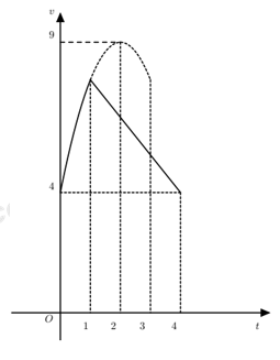 Một vật di chuyển trong 4 giờ với vận tốc v (km/h) phụ thuộc vào thời gian t (h) có đồ thị