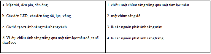 Hãy ghép mỗi phần a, b, c, d với một phần 1, 2, 3, 4 để thành câu hoàn chỉnh có nội dung đúng.