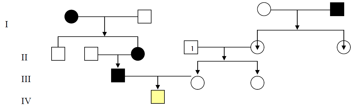 Biết tô màu gia tộc bên trái mắc bệnh K do gen trội nằm trên NST thường, tô màu đen gia tộc bên phải mắc bệnh H do gen lặn nằm trên NST giới tính X ( để trắng là không biểu hiện bệnh )