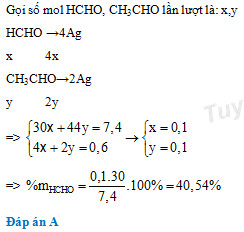 Gọi số mol HCHO, CH3CHO lần lượt là: x,y