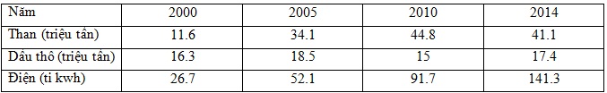 SẢN LƯỢNG THAN SẠCH, DẦU THÔ, ĐIỆN CỦA NƯỚC TA QUA MỘT SỐ NĂM
