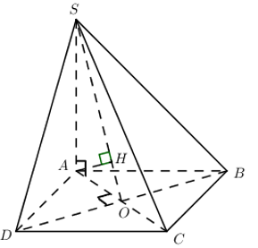 Chóp S.ABCD, \(SA\bot \left( ABCD \right);\,\,SA=a\). ABCD là hình vuông cạnh a, tâm O. Tính \(d\left( C;\left(