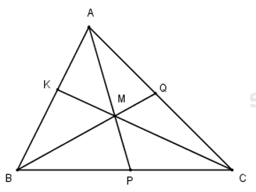Cho tam giác ABC, M là điểm bất kì nằm trong tam giác. Kéo dài AM cắt BC tại P, BM cắt AC tại Q,