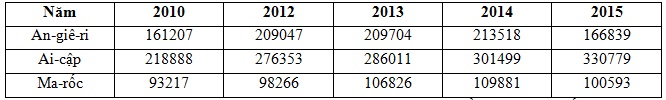 Căn cứ vào bảng số liệu, cho biết nhận xét nào sau đây đúng về tình hình tổng sản phẩm trong nước của một số quốc gia châu Phi giai đoạn 2010 – 2015?