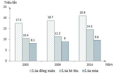 Cho biểu đồ sau: SẢN LƯỢNG LÚA NƯỚC TA GIAI ĐOẠN 2005 – 2014 Căn cứ vào biểu đồ, cho