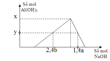 Tại thời điểm số mol NaOH là 2,4 b thì số mol Al(OH)3 là (2,4b -0,6a) : 3