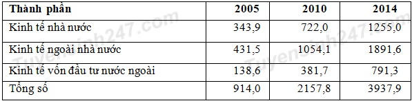 Cho bảng số liệu sau GDP theo giá hiện hành phân theo thành phần kinh tế ở nước ta Đơn vị: