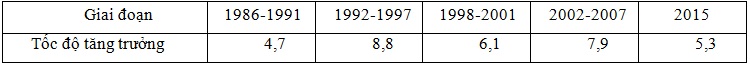 Nhận định nào sau đây không chính xác về tốc độ tăng trưởng GDP nước ta năm 1986- 2015?