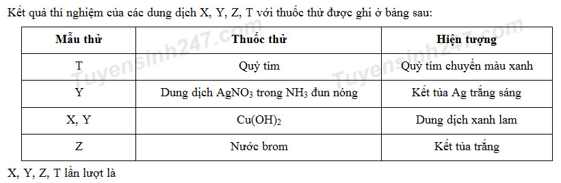 Loại C, D do T (glucozo, anilin) không làm đổi màu quỳ tím