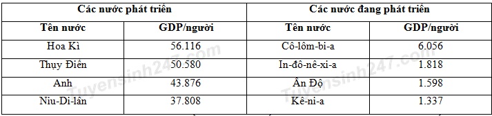 Cho bảng số liệu: GDP BÌNH QUÂN ĐẦU NGƯỜI CỦA MỘT SỐ NƯỚC TRÊN THẾ GIỚI, NĂM 2015 (Đơn