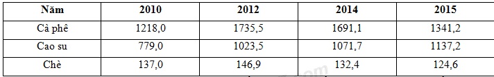 Căn cứ vào bảng số liệu, hãy cho biết nhận xét nào sau đây đúng về tốc độ tăng trưởng một số mặt hàng xuất khẩu chủ yếu của nước ta, giai đoạn 2010 – 2015?