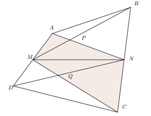 Cho tứ giác lồi ABCD. Gọi M, N lần lượt là trung điểm của AD và BC, AN cắt BM tại P và DN cắt