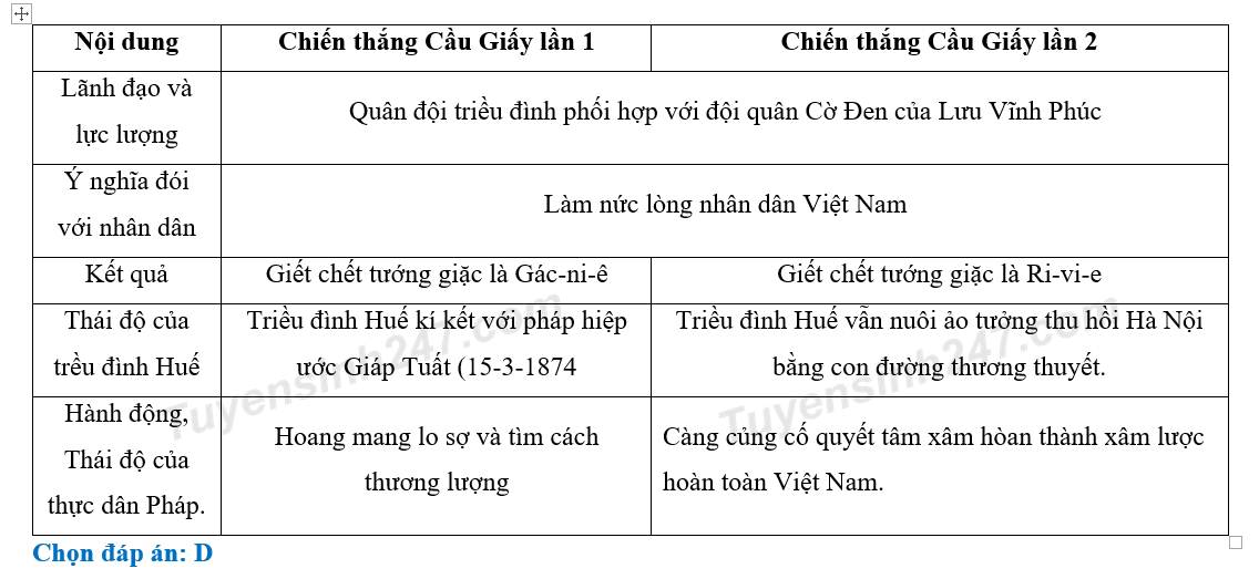 Điểm giống nhau nổi bật về kết qủa trong hai chiến thắng tại Cầu Giấy lần thứ nhất và