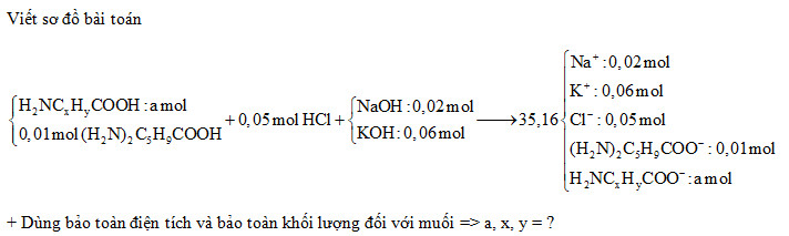 Cho hỗn hợp X gồm amino axit Y (H2NCxHyCOOH) và 0,01 mol (H2N)2C5H9COOH tác dụng với 50 ml dung dịch HCl