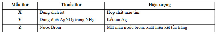 Kết quả thí nghiệm của các dung dịch X, Y, Z, T với thuốc thử được ghi ở bảng sau: Các